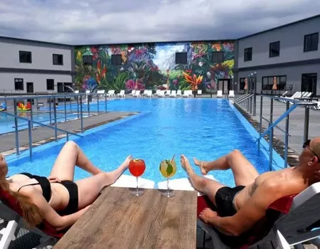 Термальный источник «Псыгупс» , что в переводе с адыгского означает «душа воды», берет свое начало на глубине 1800 м. В бассейны вода поступает напрямую из скважины и имеет природный темный цвет и уникальный запах. Расслабляющий и оздоровительный эффект достигается благодаря особым свойствам термальных вод. Купание в бассейнах под открытым небом с горячей минеральной водой.